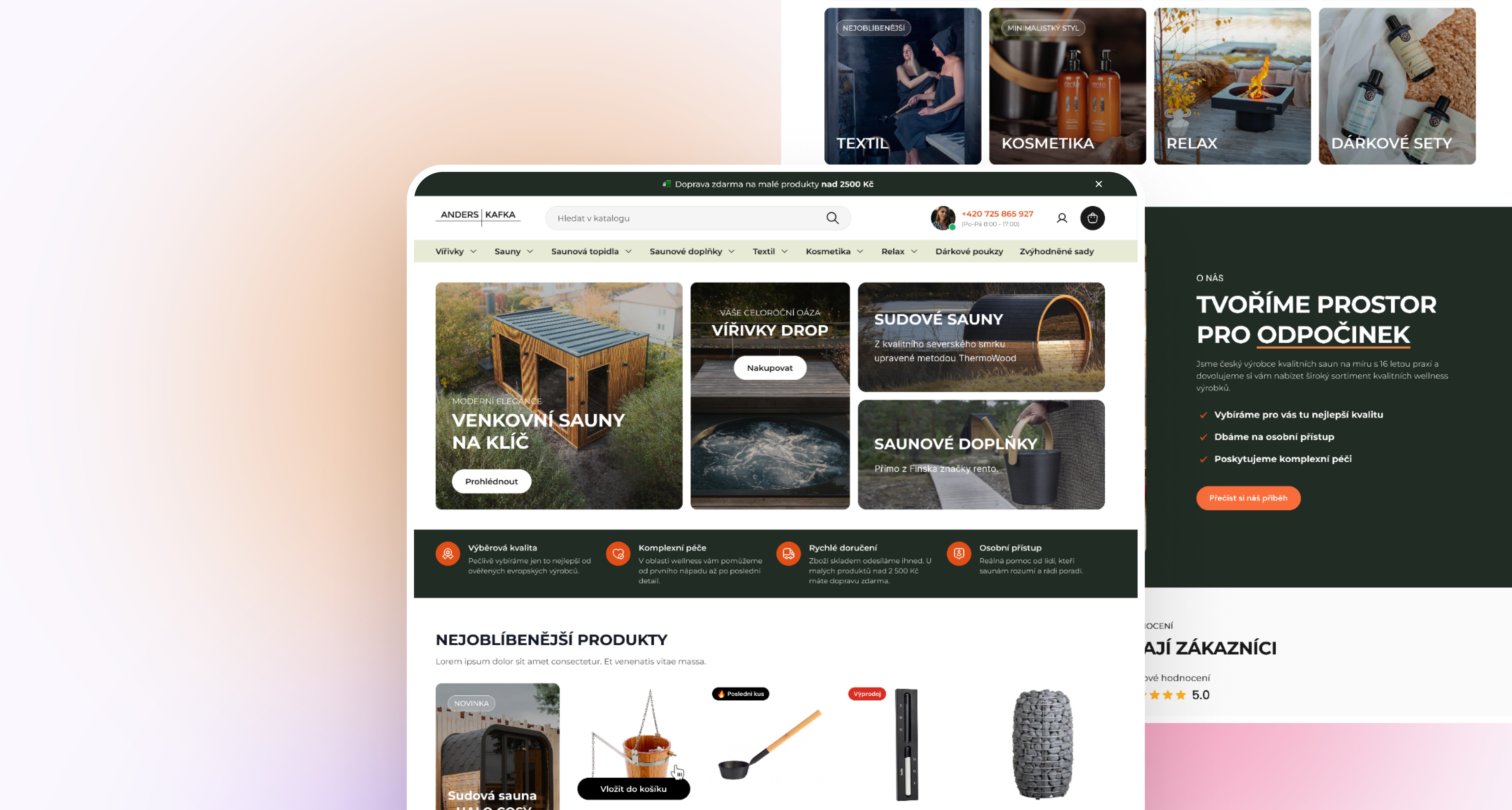 Anders Kafka je česká značka, ktorá si za roky pôsobenia vybudovala silnú reputáciu v segmente vonkajších a vnútorných sáun. Ich produkty sa pohybujú na hranici státisíc korún napriek tomu e-shop vizuálne ani funkčne neodzrkadľoval úroveň toho, čo predáva.