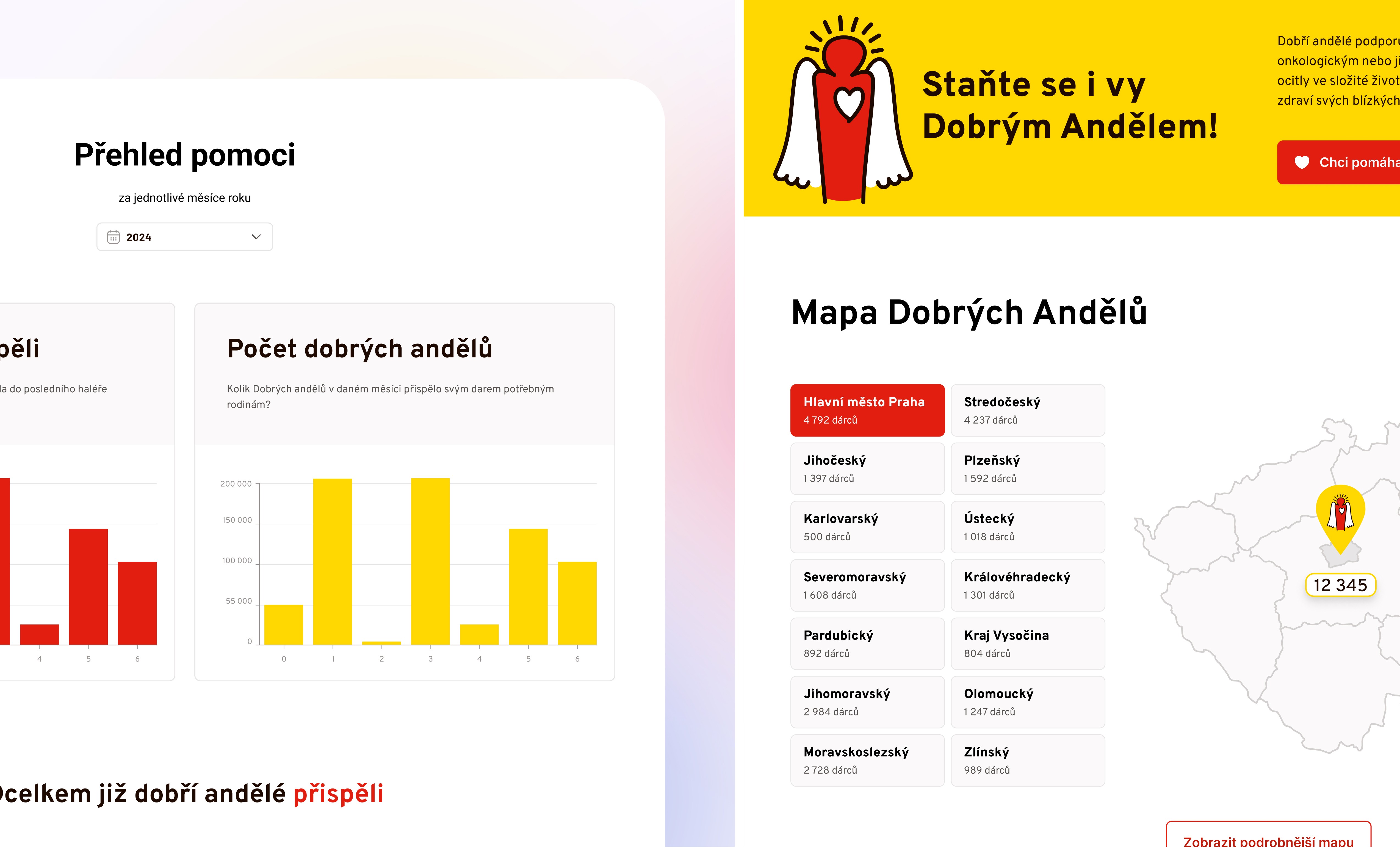 Nový web Dobrého anděla stojí na jasnej informačnej architektúre, konzistentnom design systéme a vizuálnom jazyku, ktorý rešpektuje zaužívanú identitu značky a zároveň ju posúva vpred.